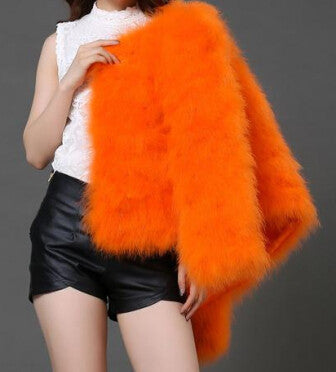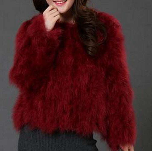 Elevate your winter wardrobe with our stunning 10 colors fashion Ostrich wool turkey fur wool coat feather fur short jacket. This exquisite jacket combines luxurious ostrich and turkey fur for a look that is both trendy and unique. Designed with a slim cut, it not only enhances your silhouette but also ensures that you stay warm during the colder months.