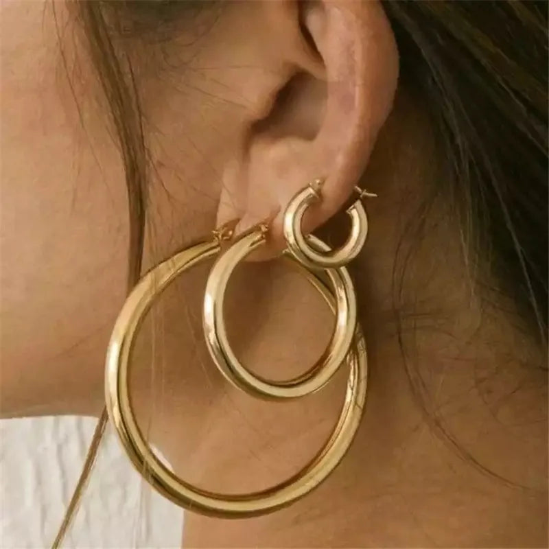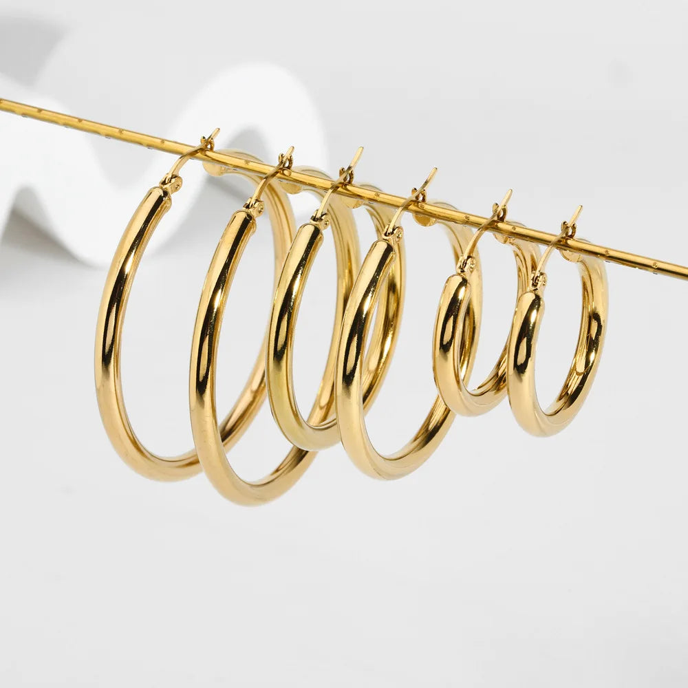 Introducing our stunning 18k Gold Plated Stainless Steel Luxury Statement Circle Hoop Earring Women Teenager Girls Jewelry Non Tarnished, a must-have accessory for anyone looking to elevate their style. Crafted from high-quality stainless steel and elegantly plated with 18k gold, these earrings exude luxury without compromising on durability. The non-tarnished finish ensures that they remain radiant and beautiful, making them a perfect addition to your jewelry collection.
