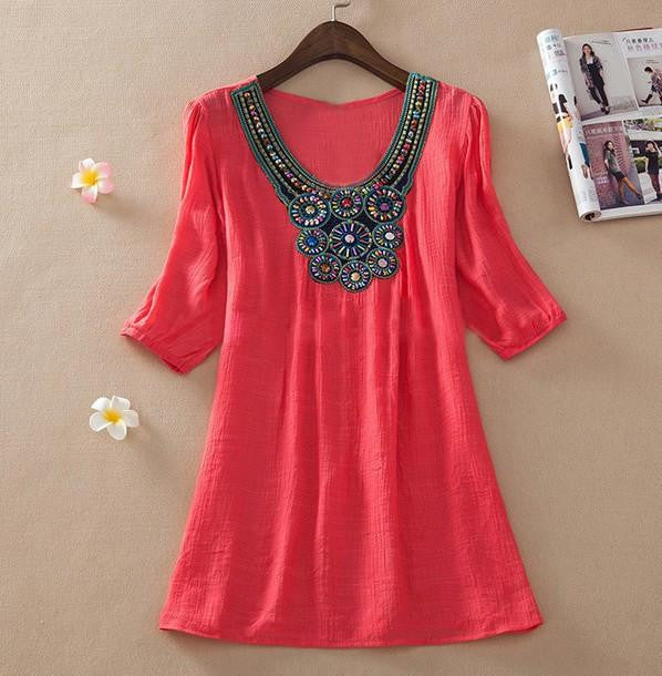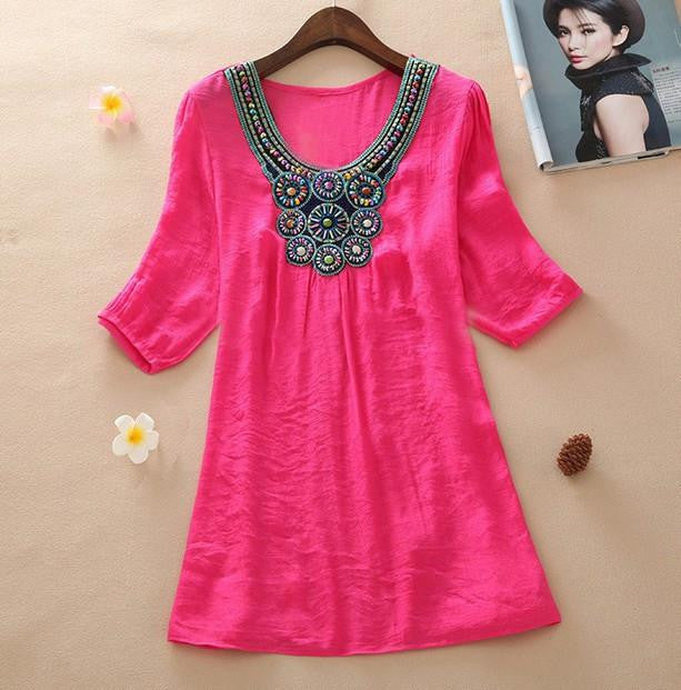 Transform your casual collection with the Women Floral Embroidery Plus Size XXXL Loose Blouse Shirts 7 Candy Colors Chiffon Casual Shirt Tops. Embrace comfort and style with this perfect blend of functionality and chic design.
