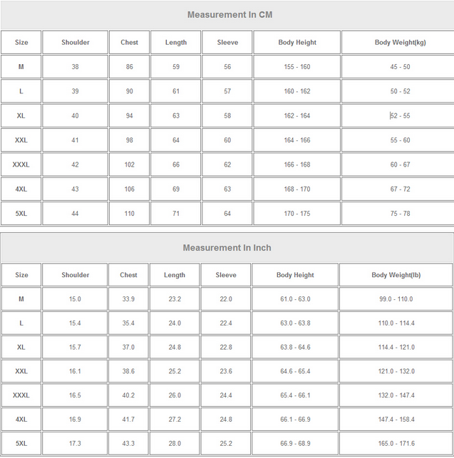 Please contact us for more detailed sizing information