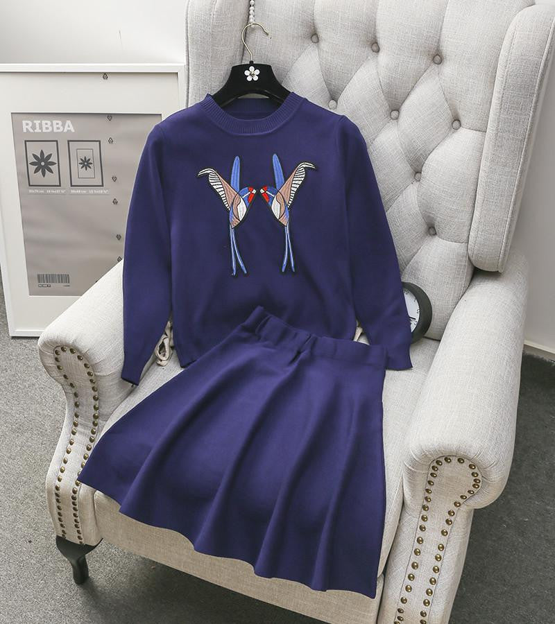 This Women's Sequined Embroider Bird Sweater Top + A-line Skirt 2pcs Sets Ladies Vogue Knit Suits Red Black Blue is not just a piece of clothing; it's a statement of style and confidence. Make an impression at parties, casual outings, or even brunch with friends. Don't miss out on the chance to own this fashionable set that combines comfort, style, and a touch of glamour!