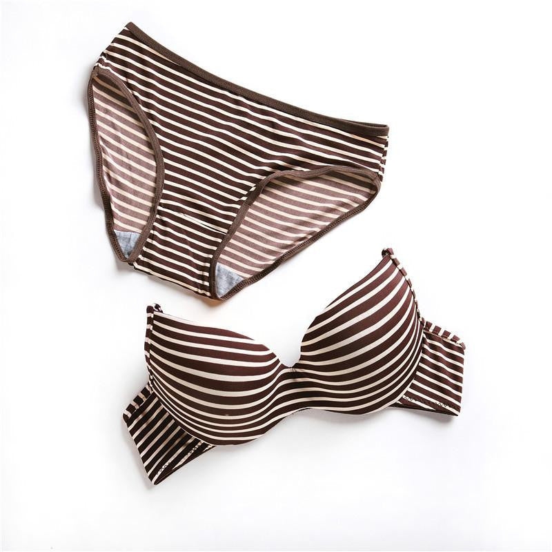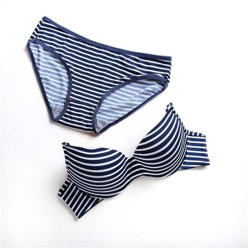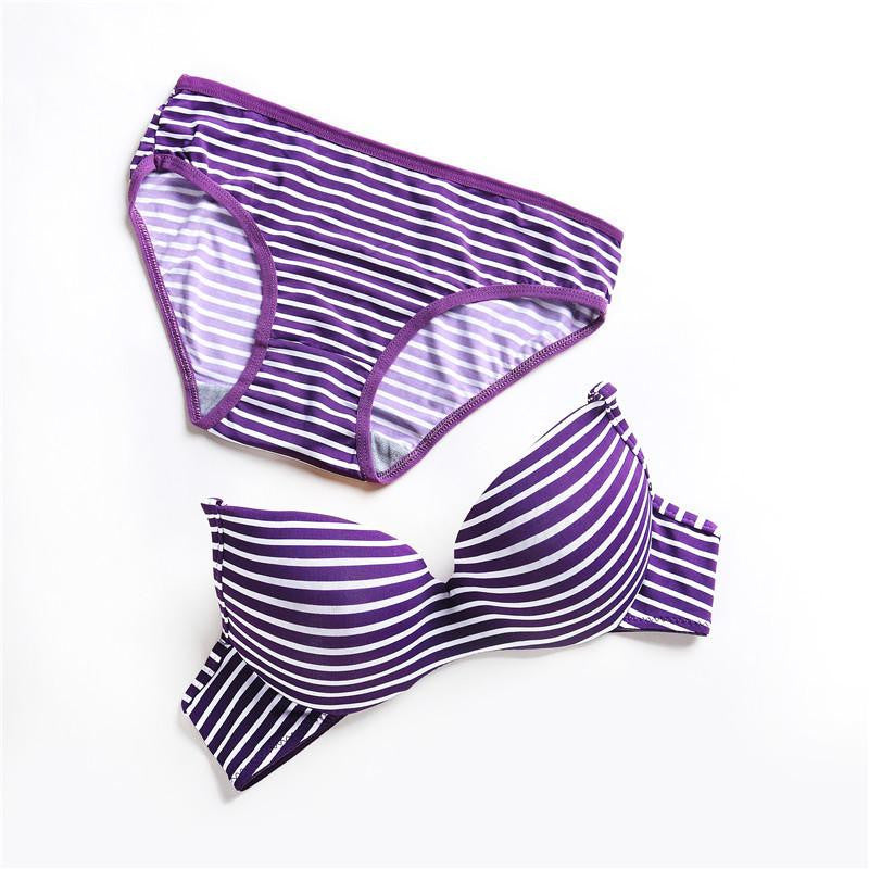 Get this beautifully striped bra set. With padded cups and underwire support. Adjust straps to your comfort with convertible straps. Available in many sizes.
