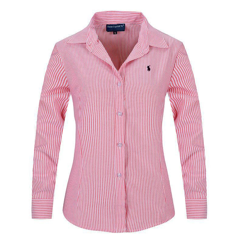Don't miss out on this essential addition to your wardrobe. Whether dressing up or down, the Women Long Sleeve Pure Color Striped Blouses Turn Down Collar Casual High Street Woman Fashion Shirts Feminino will have you looking effortlessly chic.