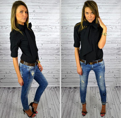 Don't miss out on this stylish and versatile piece. Add the Fashion Women Blouse Work Shirt Solid Color Casual Slim Big Bowknot Shirts Tops to your closet today and embrace a chic, modern look!