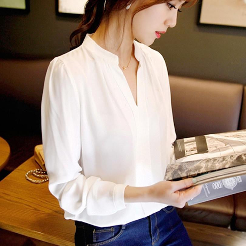 This season, elevate your wardrobe with the Women Chiffon Shirt Blouse Ladies White Pink Elegant V-neck Long Sleeve Shirts Female Office Shirt Plus Size. Embrace elegance and comfort with every wear.