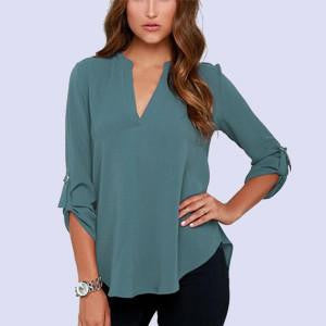 Elevate your wardrobe with our women clothes V-neck long-sleeved blouse wrinkled sleeve loose casual chiffon shirts women 7 colors. This stylish and versatile blouse is designed to enhance your casual look while providing ultimate comfort. Made from high-quality chiffon, this blouse features a flattering V-neckline and full-length sleeves, making it perfect for any occasion, whether it's a day at the office or a casual outing with friends.