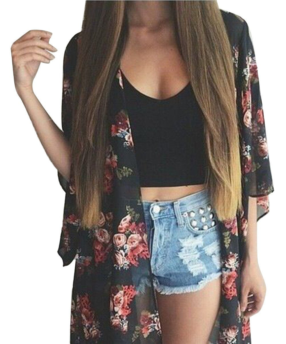 Introducing the Women Casual Vintage Kimono Cardigan style printed Chiffon Loose Blouse batwing half sleeve Black S--XL 63#, a must-have addition to your wardrobe! This exquisite piece combines style and comfort, making it perfect for any occasion. Crafted from high-quality chiffon, this loose blouse drapes beautifully, providing a flattering silhouette for every body type.