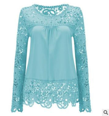 Introducing the Women Fashion Elegant Lace Blouse Shirt Chiffon Long Sleeve Tops Plus Size Women Clothing 15 Colors S-7XL, a perfect blend of style, comfort, and versatility. This exquisite blouse is designed for the modern woman who desires elegance without compromising on comfort. The lightweight chiffon fabric feels soft against the skin, making it ideal for all-day wear, whether you're at work or enjoying a night out.