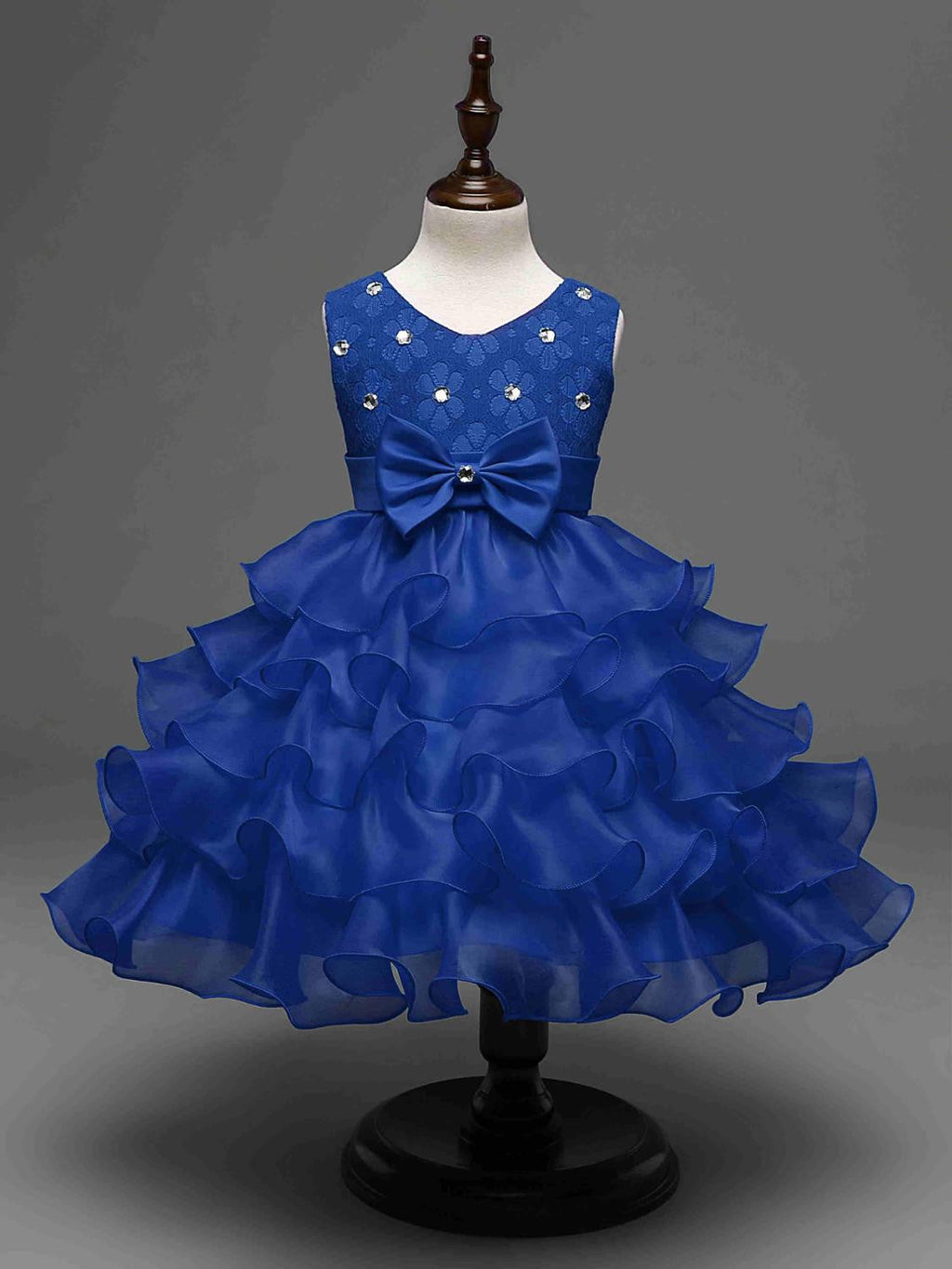 Get the elegant ball gown for your Princess. This sleeveless layered gown is perfect for any formal engagement. Use for her birthay celebrations as well.