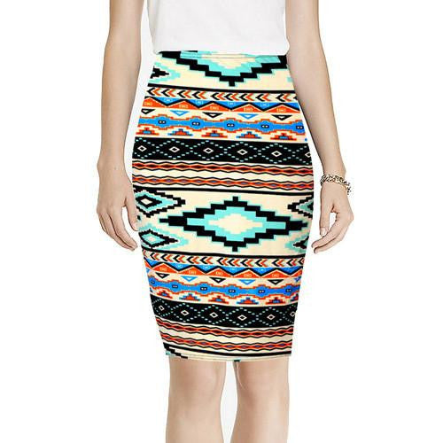 This summer be in style and stay fashionable in this beautiful high-waist pencil printed skirt. This knee length skirt is a great piece to any outfit.