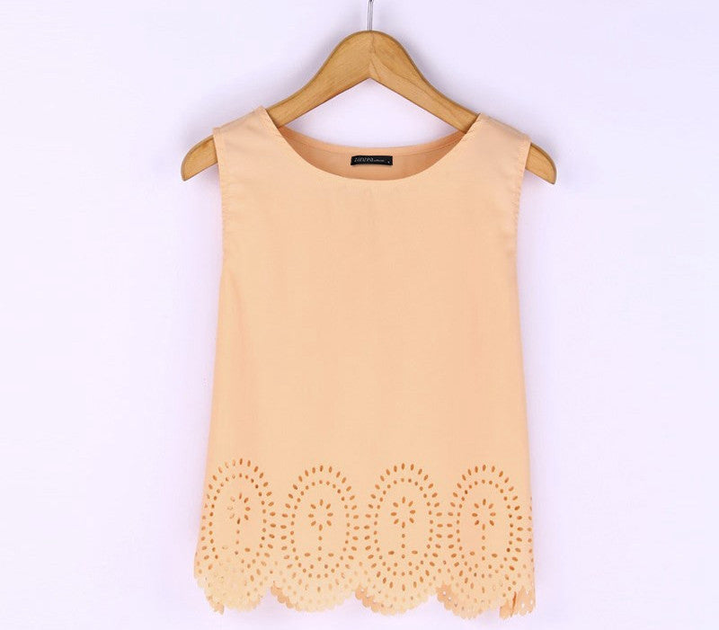 Introducing the Fashion Women Cropped Top Chiffon Tank Hollow Out Sleeveless Vest Plus Size Ladies Casual Colors, a must-have addition to your wardrobe! This chic and stylish top is designed for the modern woman who values both comfort and elegance. The unique hollow-out design adds a touch of sophistication, making it perfect for various occasions, whether you're heading to brunch or a casual night out.
