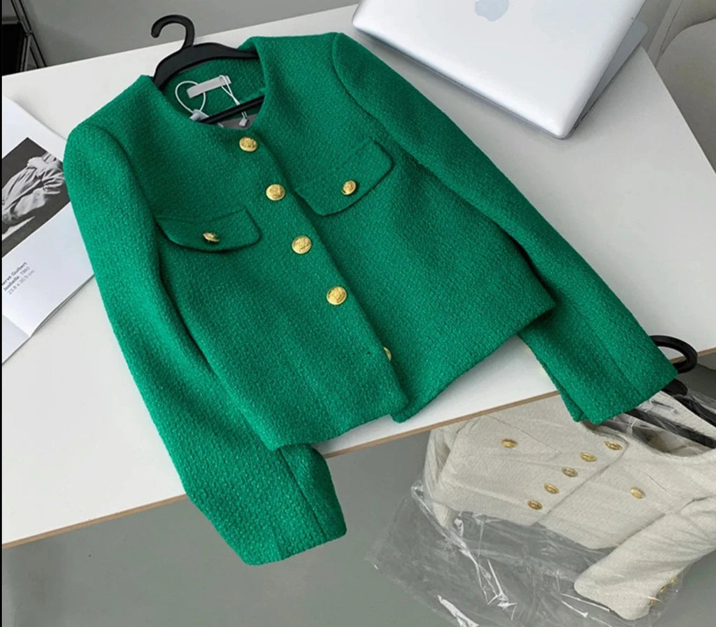This Jacket White Women's Tweed Jacket Green Tweed Jacket Black Short Coat Metal Single Breasted Cropped Top is the perfect blend of style and functionality. With its elegant design and practical features, it's destined to become your go-to outerwear piece. Don’t miss the chance to enhance your wardrobe with this timeless classic. Grab yours today and step out in style!