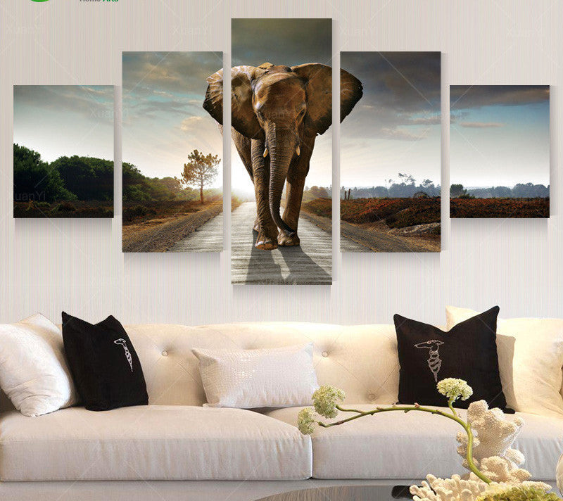 Make a bold statement in your space with the 5 Panel Large Modern Printed Elephant Oil Painting Picture Cuadros Decoracion Canvas Wall Art For Living Room Unframed PR930A. Its modern artistic appeal will enhance your decor while offering a unique, stylish touch that reflects your personality. Bring home this stunning piece today and enjoy the beauty it adds to your surroundings.