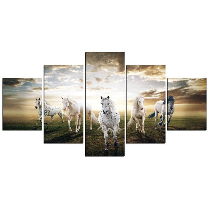 This captivating wall art is ideal for various settings. Whether it's in your living room, office, or waiting area, the 5 Panels Running Horse Modern Painting brings life and energy to the environment. Its luxurious appeal makes it a perfect conversation starter, while its rich colors can uplift any space instantly.