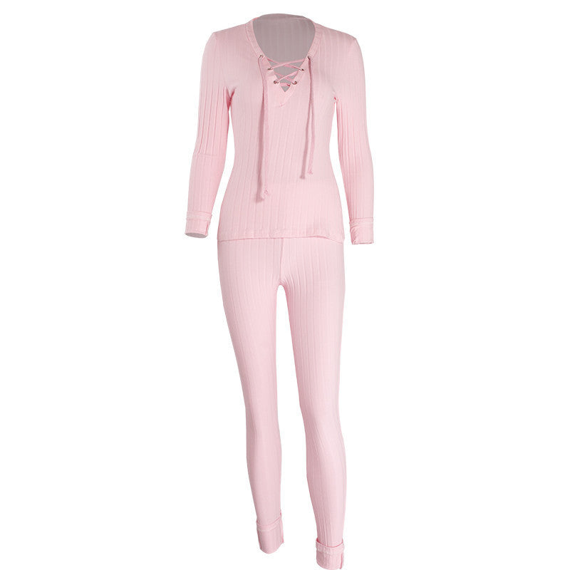 Transform your wardrobe with the Lace up Deep V neck Long Sleeve Bodycon Knitted Rompers Women Jumpsuit Two pieces Outfits Long Pants Pink Jumpsuits and enjoy the perfect blend of style and comfort that this stunning piece offers.