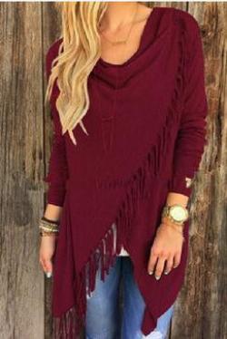 Elevate your wardrobe with our Tassel T shirt Women Long Sleeve Irregular Bow Shawl Tops Loose Plus Size S-3XL Casual Cardigan Tee Shirts. This versatile piece is designed for the modern woman who seeks both style and comfort. Made from high-quality polyester broadcloth, this top features a beautiful tassel decoration and an irregular bow shawl design that adds a unique touch to any outfit.