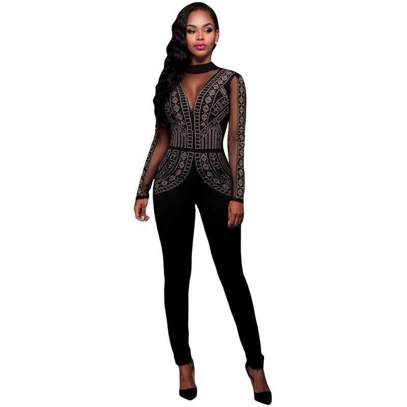 Elevate your wardrobe this season with our Women Jumpsuit Long Pants Romper Mesh Studded Sleeve Turtleneck Solid Night Club Elegant Slim Jumpsuits Overall. This stunning piece combines style and comfort, making it an essential addition to your closet. Designed for the modern woman, this jumpsuit is perfect for a night out or any elegant occasion, ensuring you feel confident and chic.