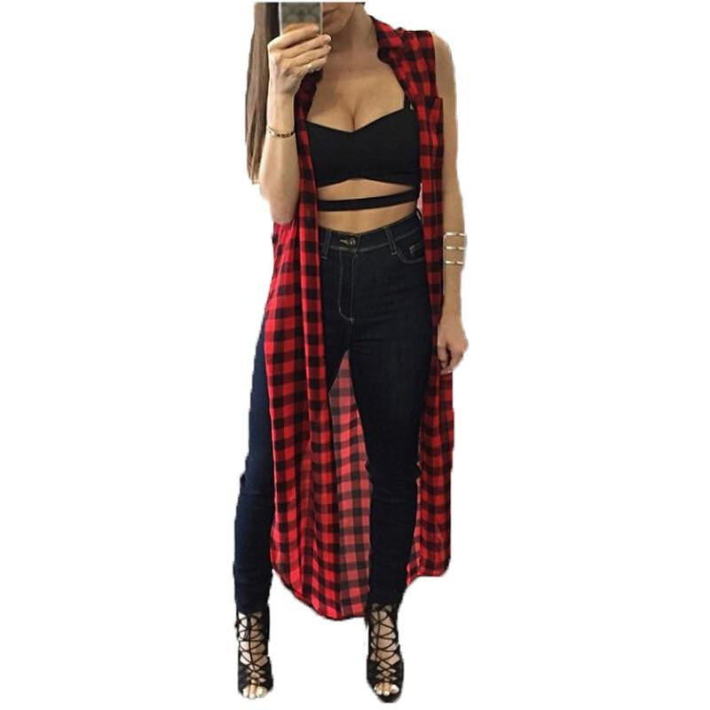 Make a statement with the Women Casual Loose Long Plaid Blouses Sleeveless Split Shirts Lapel Tops Cardigan Coats. Whether you're dressing it up for a night out or keeping it casual for a day with friends, this blouse is designed to impress. Don't hesitate to reach out for more detailed sizing information. Add this stunning piece to your collection today and embrace effortless style!