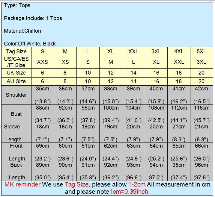 Plus Size: S M L XL XXL 3XL 4XL 5XL