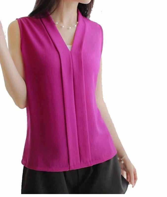 Get this chiffon top with V-neck this summer. This sleeveless solid top is regular and come in many colors.