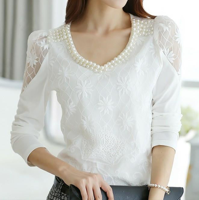 Make a fashion statement with the women Bright Bead V-neck lace Floral blouse shirts woman long sleeve top blouses Ladies tops. Order yours today and elevate your wardrobe with this elegant piece!