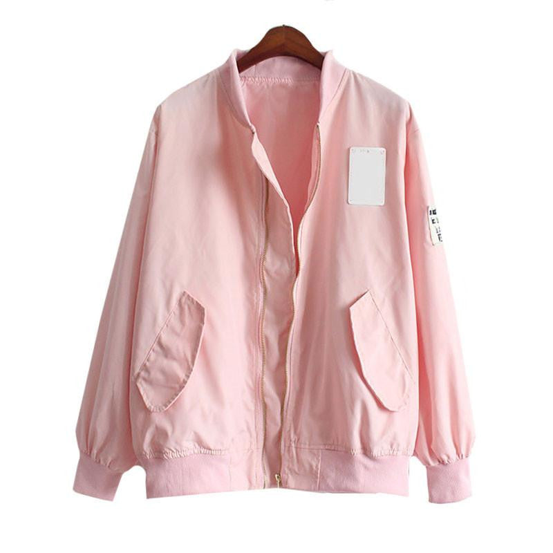 The Women Tops Long Sleeve Pink Contrast Stand Collar With Pockets Zipper Bomber Jacket is not just about style; it brings functionality to the forefront. With full sleeves and a regular length, it offers warmth without sacrificing your fashion sense. Wear it over a casual tee, or pair it with your favorite jeans for an effortless look that stands out.