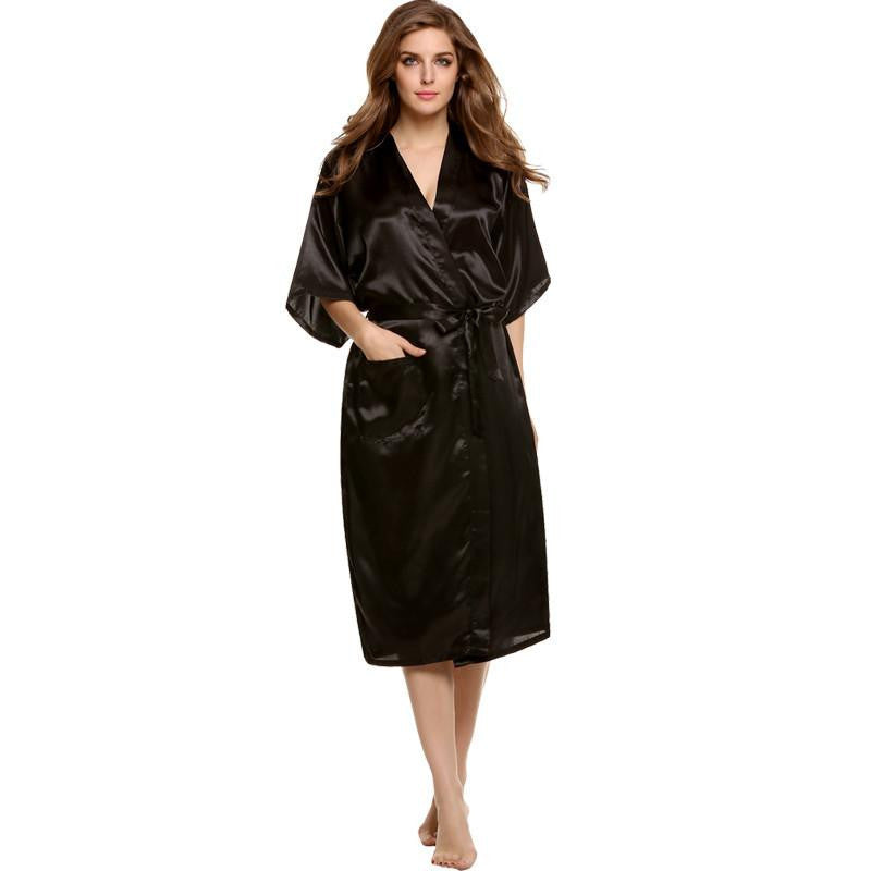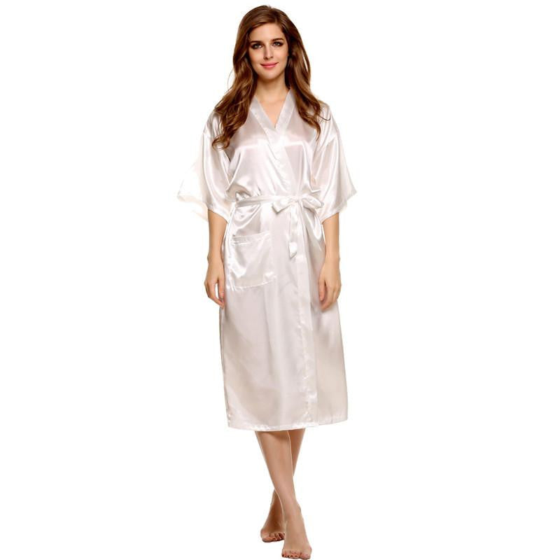 Indulge in luxury with our stunning Women Nightwear Robes Sleepwear Long Night Dress Gown Robe with Belt Silk Pajamas. Crafted from high-quality faux silk and polyester, this elegant nightwear is designed to elevate your nighttime routine. With its knee-length cut and exquisite satin fabric, you will feel both comfortable and chic, whether lounging at home or unwinding after a long day.
