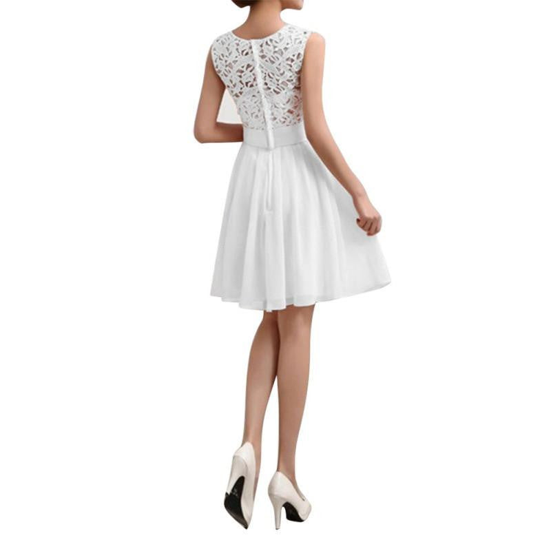 Contact us for more detailed sizing information and embrace the summer in style with the Women Lace Chiffon Dress Sleeveless O-neck Knee Length Solid Dress.