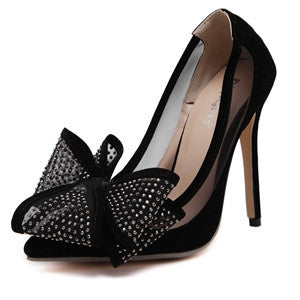 Available in elegant colors such as black and silver, these stilettos are a must-have addition to your wardrobe. Make a statement at your next event with our Pointed toe high heels with Rhinestone bowtie high heel pumps ladies stilettos wedding dress shoes for women and experience the perfect blend of style and comfort.