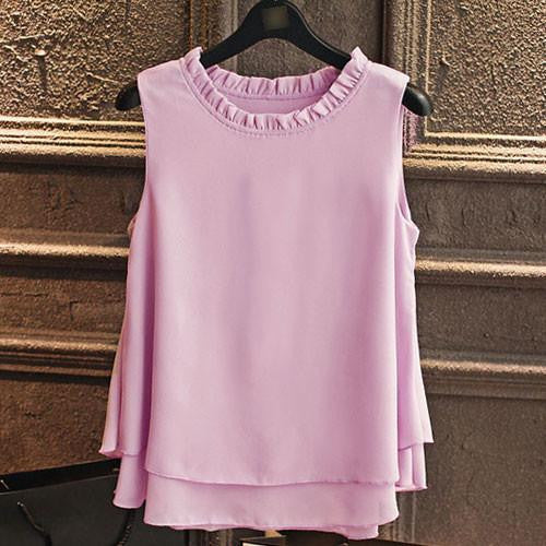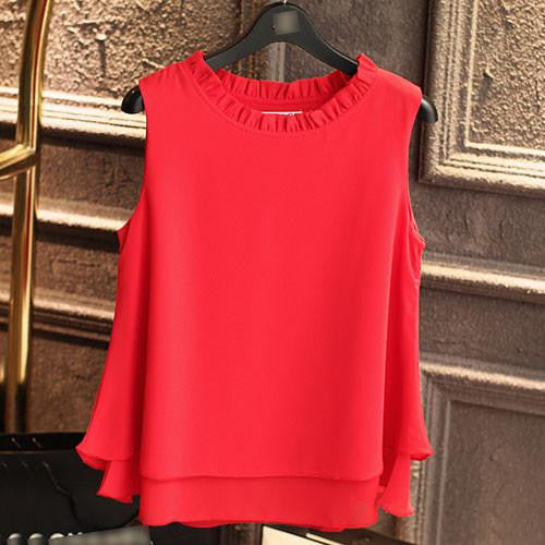 Elevate your wardrobe with our stunning Women Tops Sleeveless Blouses Plus Size Loose Ruffle White Shirt Fashion Chiffon Blouse For Women. This chic and versatile blouse is designed for the modern woman who values both style and comfort. Crafted from high-quality chiffon, this blouse features a lightweight and breathable fabric that is perfect for warm weather. The unique ruffle detailing adds a touch of femininity, making it an ideal choice for casual outings, office wear, or special occasions.