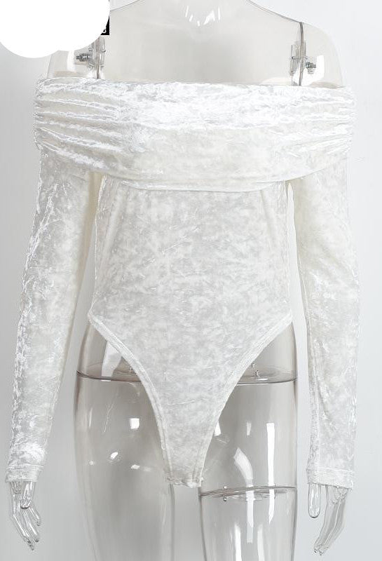 With its sleek design and trendy silhouette, the Glamaker Autumn winter white velvet off shoulder bodysuit is not just a piece of clothing; it’s a fashion statement. Whether you're hitting the dance floor or enjoying a night out, this jumpsuit will keep all eyes on you. Available in various sizes, it is designed to flatter every body type, ensuring you look and feel your best.