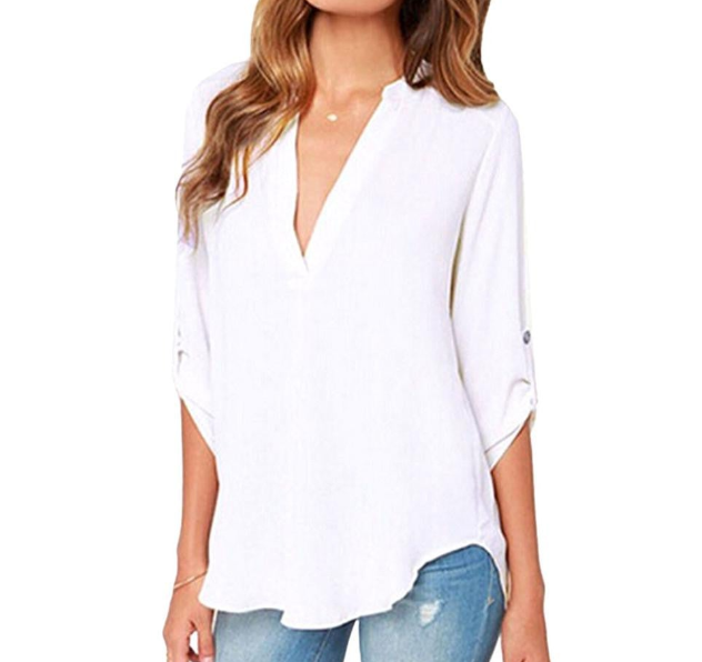 For detailed sizing information or personal styling advice, feel free to contact us. Elevate your wardrobe today with this extraordinary Half Sleeve Women V Neck Loose Casual Collar Chiffon Shirt Tops.