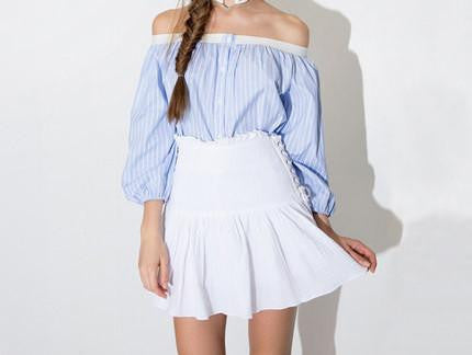 Discover the ultimate style statement with our Womens Off Shoulder Lantern Sleeve Striped T-shirt Loose Slim Pleated Button Basic Tops Tees for. This chic and trendy top is designed to elevate your wardrobe, offering a perfect blend of comfort and fashion-forward appeal. The off-shoulder design beautifully accentuates your neckline, while the lantern sleeves add a dash of elegance and flair to your everyday look.