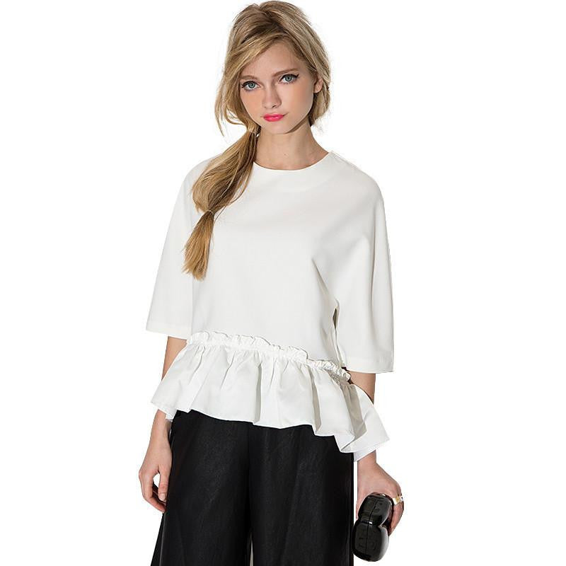 Don't miss out on adding the Women Elegant Ruffle Tee Shirt Asymmetric Top Draped Ladies Blouse to your fashion line-up. Its combination of style, comfort, and versatility makes it a must-have for every modern woman. Upgrade your wardrobe today!