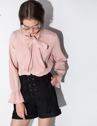 Don't miss out on adding this essential piece to your closet today. With its blend of fashion and functionality, the Womens Chiffon Bow Pleated Single-breasted Blouse Shirts Casual Flare Sleeve Overalls Tops Tees for is a must-have for every stylish woman.