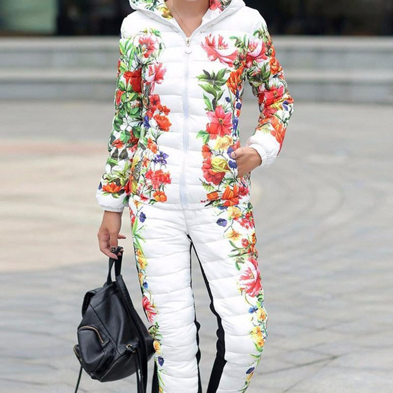 Don’t miss out on this stunning Women Casual Flower Printed Hooded Warm Basic Parka Suits (Coat+Pants Sets) Outwear. Contact us for more detailed sizing information, and embrace a fashionable and functional look today!