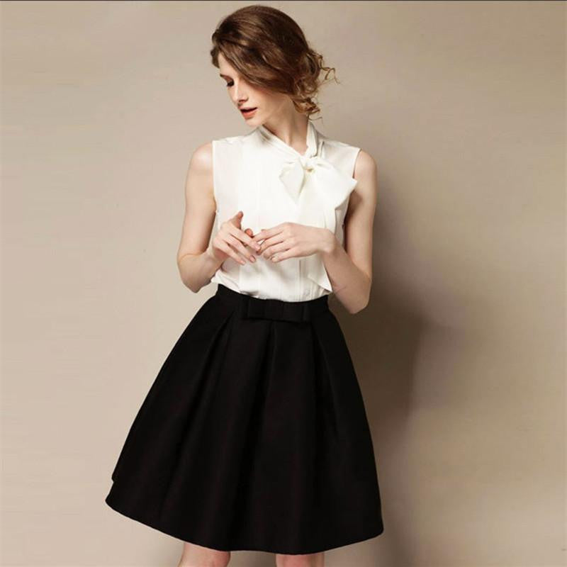 The high waist design accentuates your figure while the knee-length A-line silhouette ensures a flattering fit for women of all sizes, including plus sizes. The beautiful bow decoration adds a touch of sophistication, making this skirt a standout piece that embodies both femininity and class.