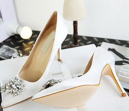 Step into elegance with our High genuine leather wedding party shoes bride high heels shoes crystal rhinestone pointed toe women shoes pumps. These stunning pumps are the perfect accessory to elevate your wedding day look, crafted with exquisite attention to detail. Designed for brides who want to make a statement, these shoes combine high-quality genuine leather with a striking pointed toe and luxurious rhinestone embellishments.