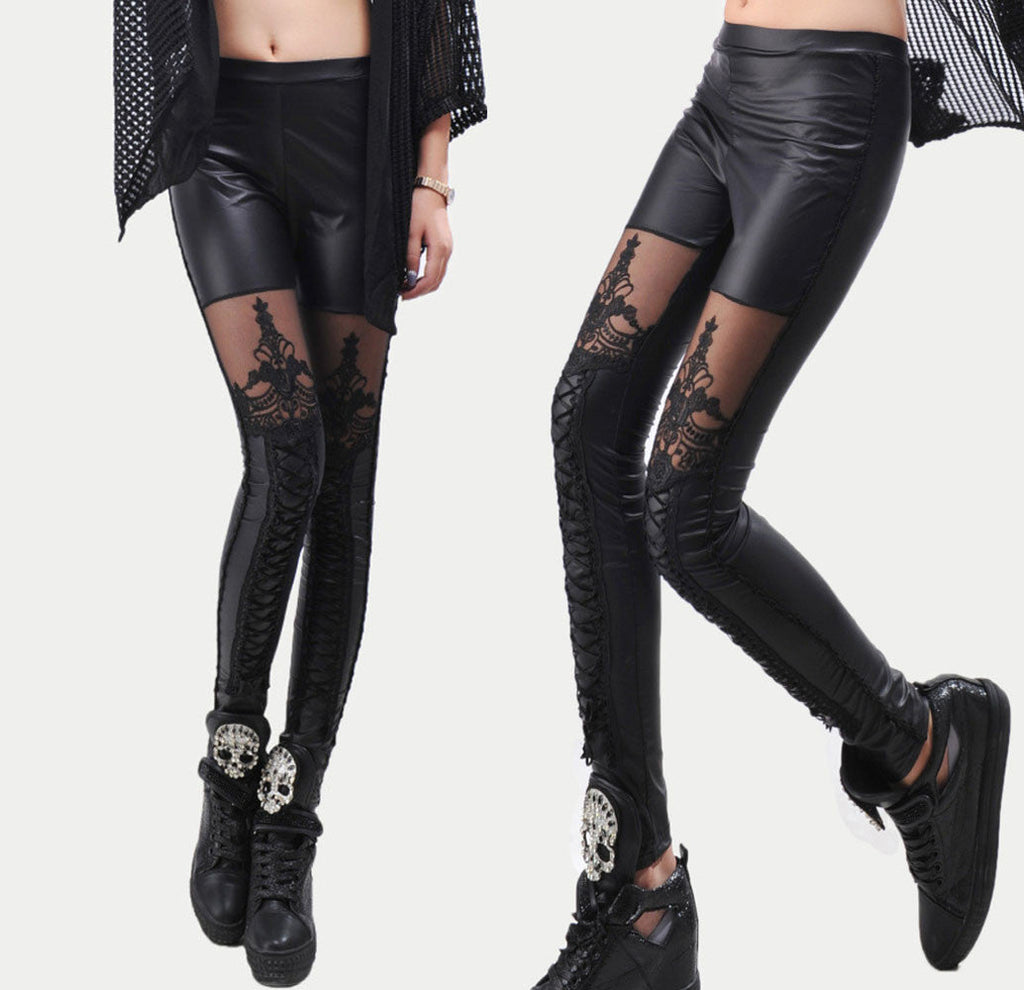 Whether you're hitting the town or enjoying a casual day out, the Fashion Women Lace-up Faux Hollow PU Leather Lace Leggings Pants Black HB88 will keep you looking chic. Available in various sizes, these ankle-length leggings are suited for every body type. The standard thickness of the fabric ensures comfort without compromising style.