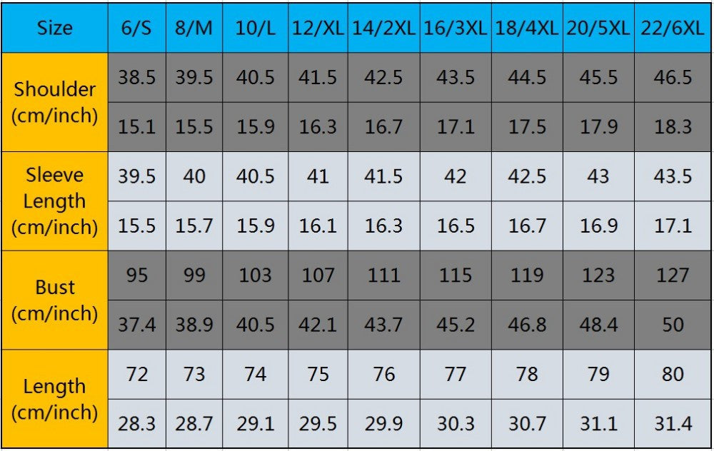 Sizing chart can be found in the photo section at the top of the page or in the description.