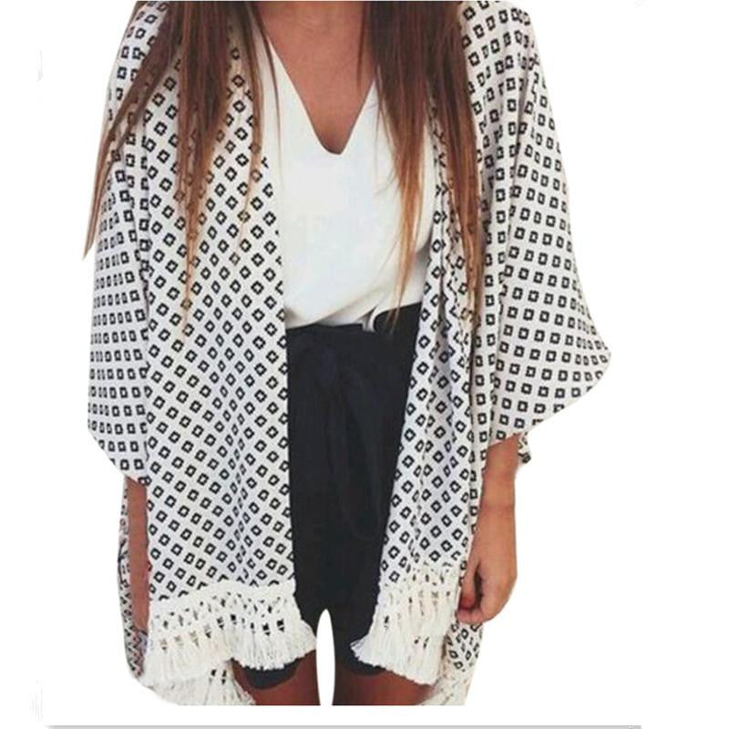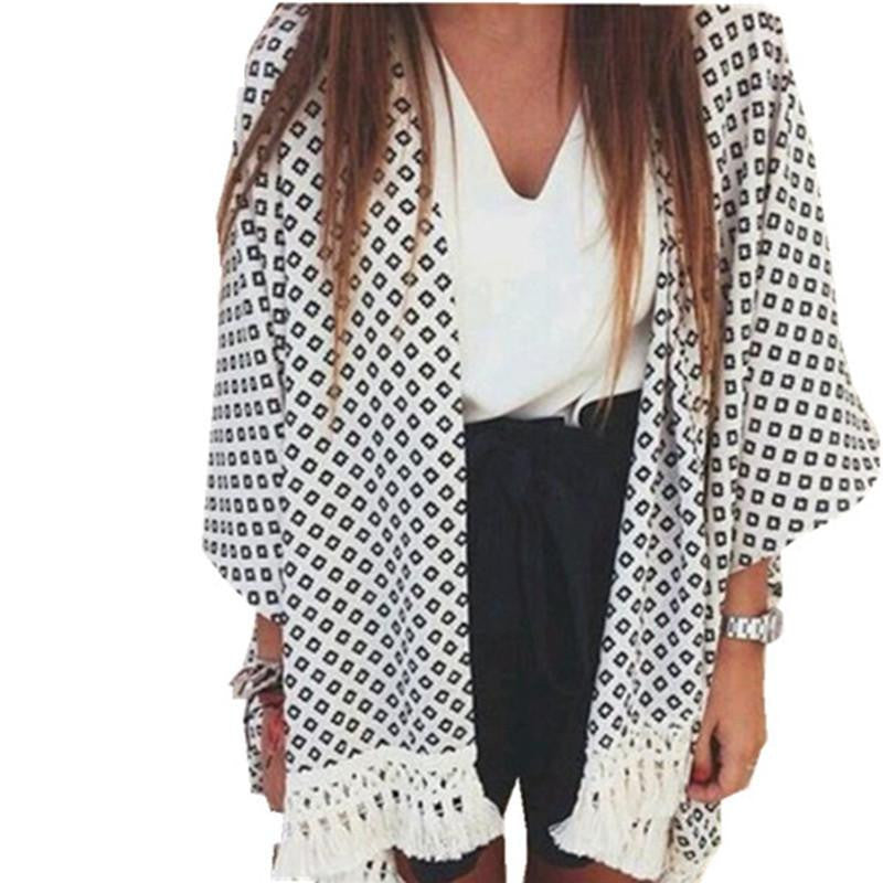 Elevate your wardrobe with the Women Tassel Vintage Plaid Printed Cardigan Casual Loose Batwing Sleeve Tops Blouses. This stunning cardigan is designed for the modern woman who values both style and comfort. With its unique plaid pattern and elegant tassel detailing, this piece is perfect for any casual outing or relaxed gathering. Enjoy the flattering batwing sleeves and breathable chiffon fabric that provide a loose fit, making it an ideal choice for layering during transitional seasons.
