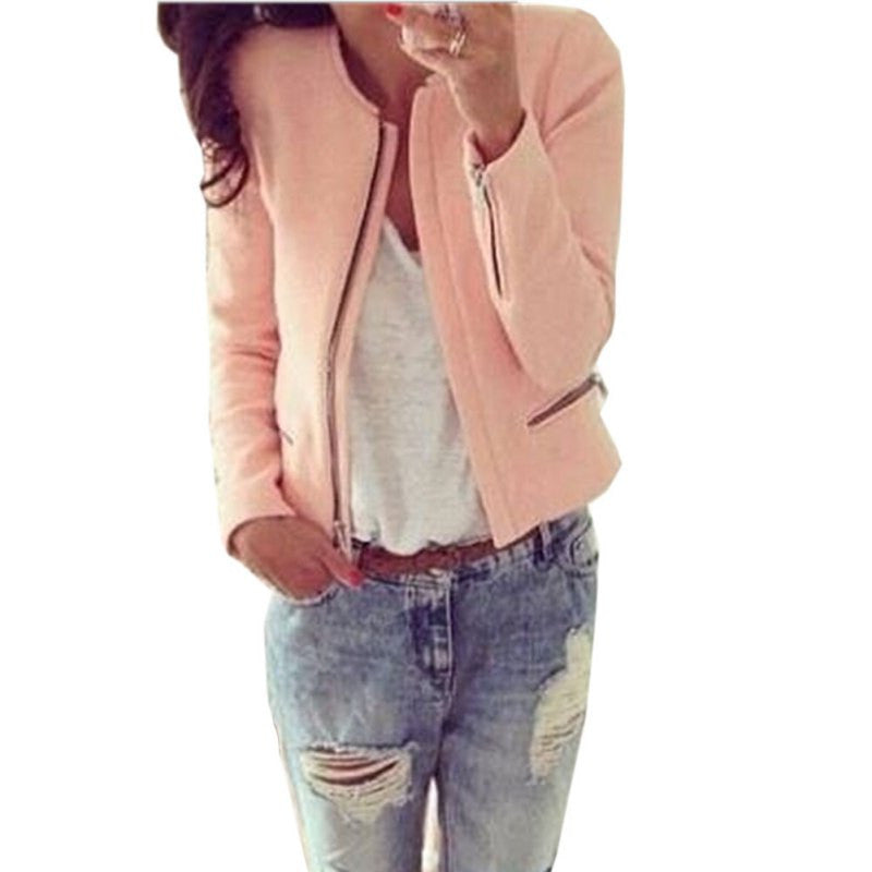 Elevate your wardrobe with our Jackets for Women Zipper Jacket O-Neck Long Sleeve Pink Tops Women Coat. This stunning outerwear piece is designed to keep you both fashionable and comfortable, making it perfect for any season. Crafted from a blend of cotton and spandex, this jacket offers a slim fit that accentuates your silhouette while ensuring ease of movement.