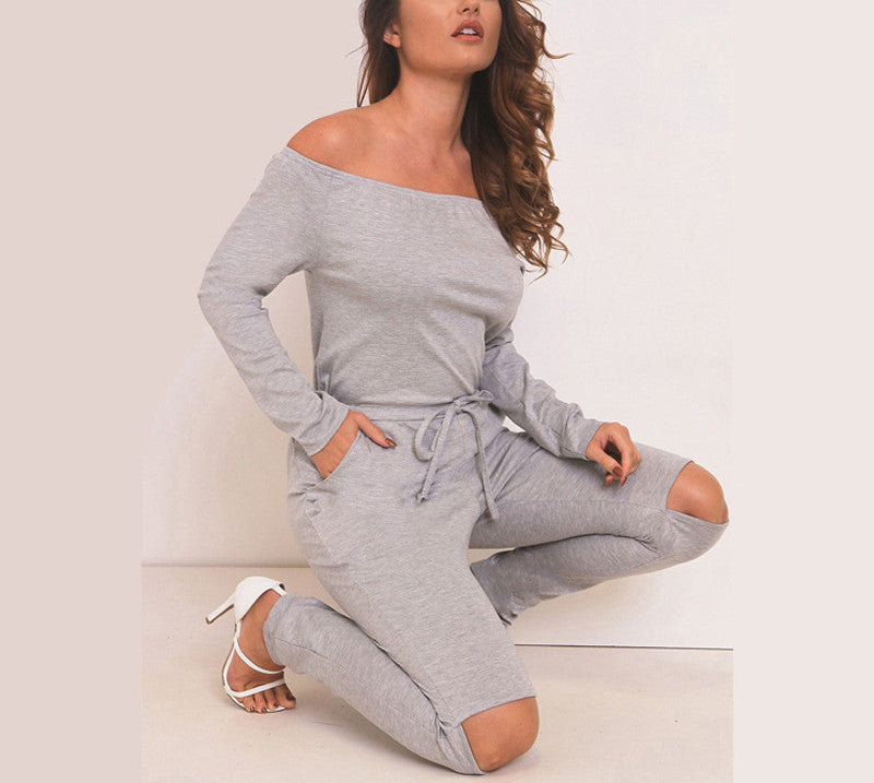 Elevate your wardrobe with the exquisite Off Shoulder Long Jumpsuit Women Rompers Hollow Out Lace Up Bodysuit Overalls Plus Size Playsuit. This stunning piece combines elegance and comfort, making it a must-have for any fashion-forward woman. Designed with a chic off-shoulder style and intricate hollow-out details, this jumpsuit offers a sexy yet sophisticated look suitable for various occasions.
