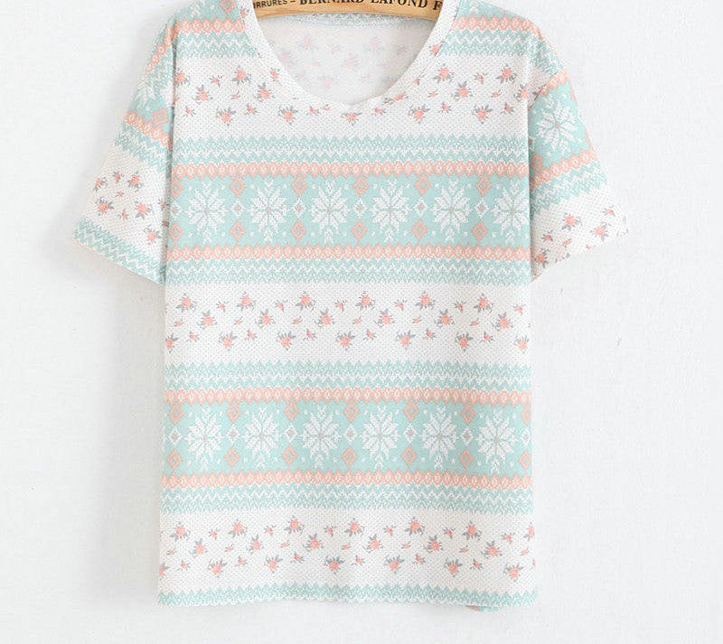 This tee shirt features a regular fit and is crafted from a blend of cotton and polyester, ensuring breathability and comfort throughout the day. The O-neck collar and short sleeves make it ideal for layering or wearing alone during warmer days, while the eye-catching geometric patterns add a trendy touch to any outfit.
