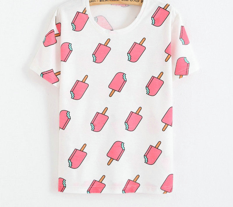 Introducing the Fashion Vintage Style Harajuku T Shirt Women Clothes Tops Emoji Funny Tee Shirts Ice Cream Print, a must-have addition to your wardrobe this season! This playful and stylish tee captures the essence of Harajuku fashion, combining fun emoji graphics with a delightful ice cream print. It's perfect for those who want to express their unique style while staying comfortable and chic.