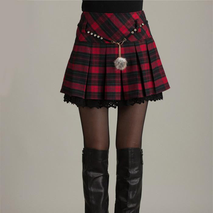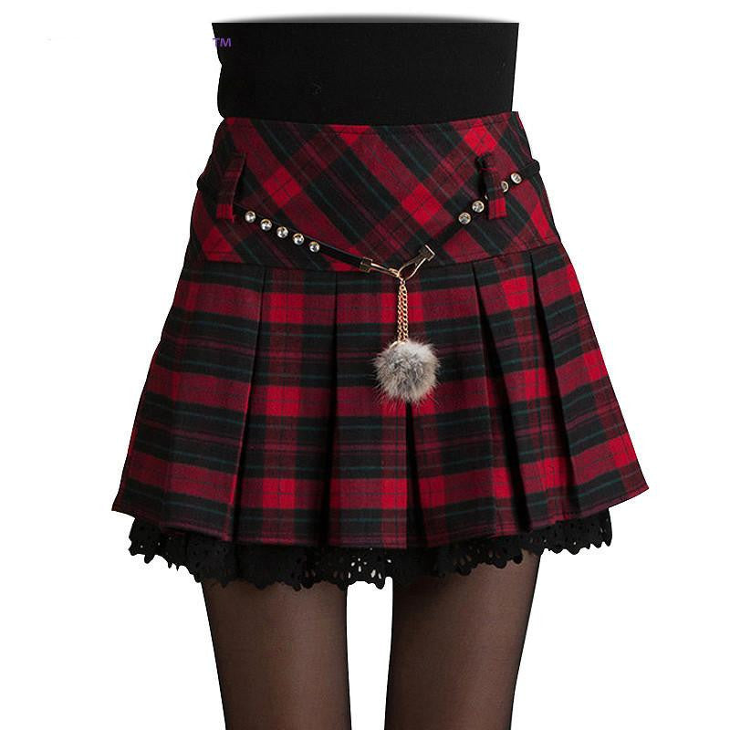 Discover the elegance of the Woolen Lace Stitching Empire Waist Plaid Skirt Sashes Ruffles Pleated A-Line Preppy Style Lolita Women Skirts. This stunning mini skirt combines comfort and style, making it a must-have piece for your wardrobe. The unique empire waist design flatters your silhouette, while the delicate lace stitching and ruffles add a touch of femininity and charm.