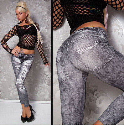 These women fake jeans Fashions Women's Jeans Look leggings Seamless tattoo Jeggings printed pants are a must-have addition for any fashionable woman's closet. Embrace the comfort without sacrificing style, and make a bold fashion statement wherever you go!