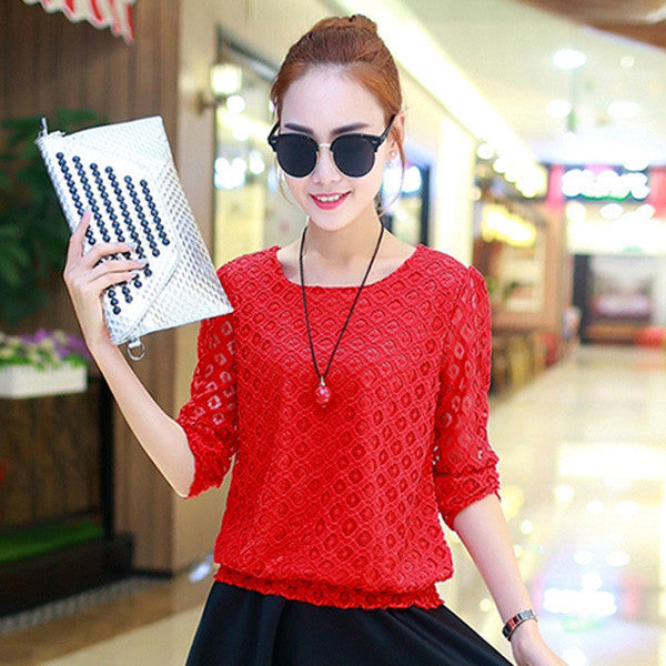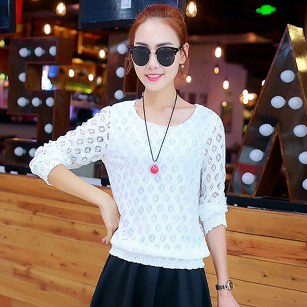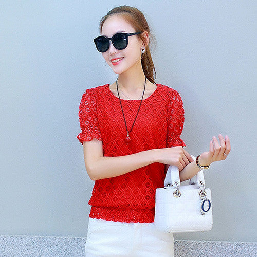 Featuring delicate lace detailing, these short-sleeved blouses bring a touch of elegance to your everyday look. The hollow-out design adds a unique flair, setting you apart from the crowd. The solid pattern makes it easy to pair with any bottom, from jeans to skirts.