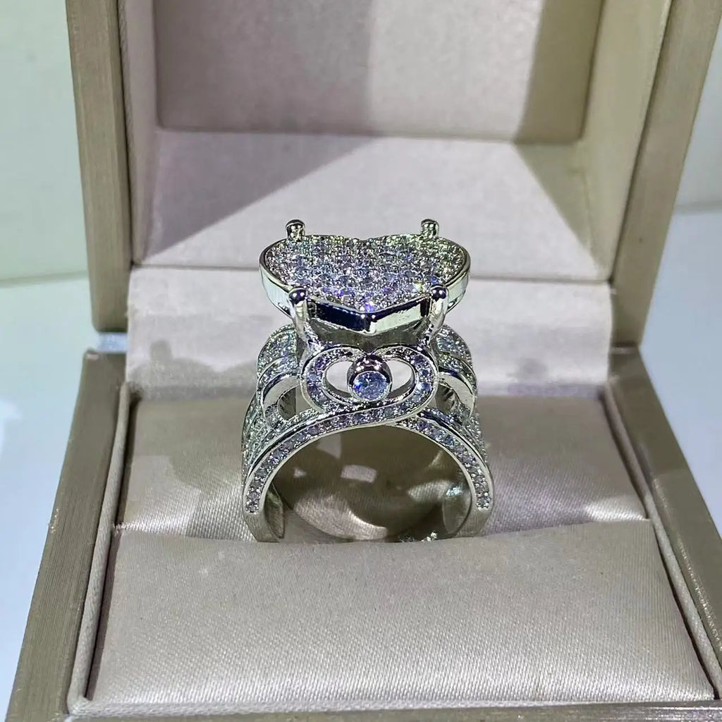 Introducing the Silver Exquisite Big Heart Ring 5A CZ Micro Pave Cubic Zirconia Ring Fully Iced Out Bling Hip Hop Punk Men Women Jewelry, a stunning piece that redefines elegance and boldness. This ring is crafted from high-quality 925 sterling silver and is adorned with 5A Cubic Zirconia, ensuring a brilliant shine that catches the eye from every angle. Whether you're dressing up for a party or simply want to elevate your everyday style, this ring is the perfect accessory.