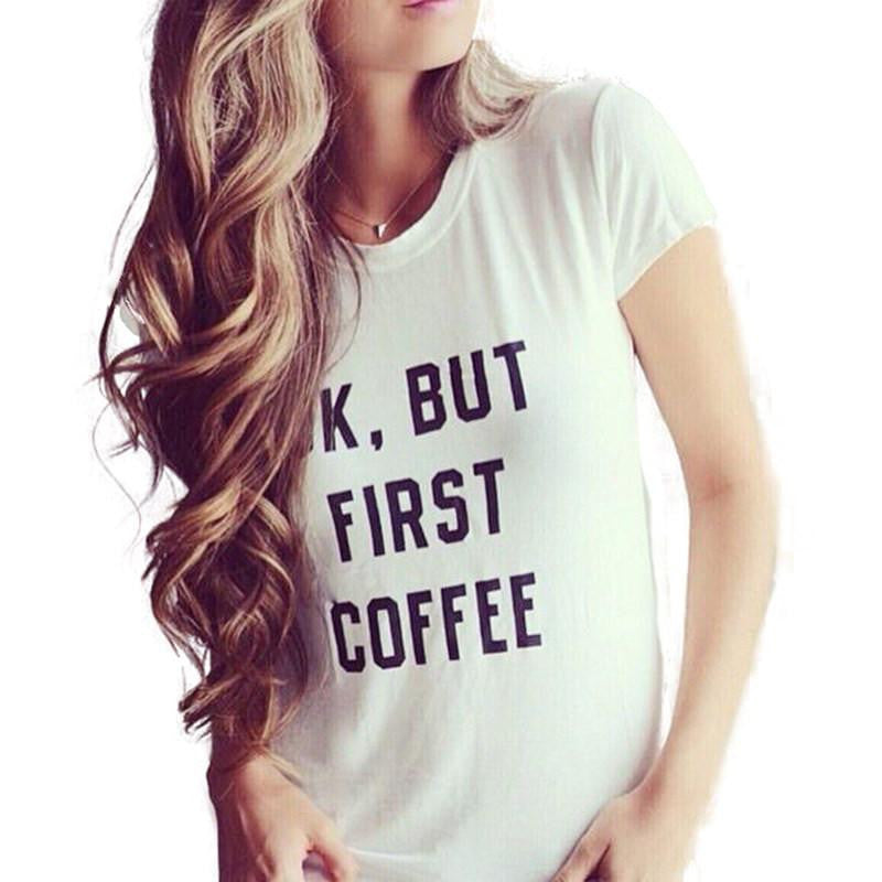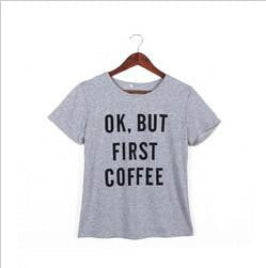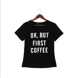 style 1: new fashion summer OK BUT FIRST COFFEE T Shirts Printed Letter Tops